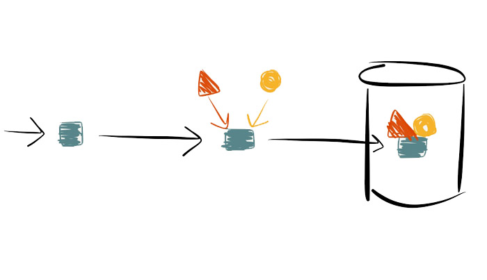 We're subscribing to an event publisher, converting messages to enriched data models, and feeding them into a data store.